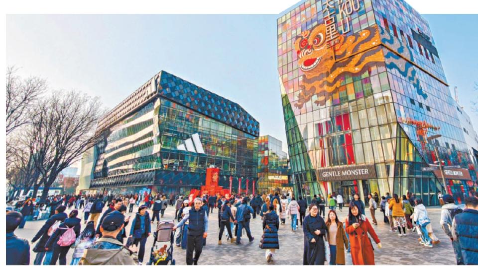 非遗醒狮“闯入”前卫街区,海外大牌旗舰店的灯光与春节红色遮拦交相衬映,动荡的古典音乐在潮水地标上空漂荡……正月初五,三里屯商圈,传统与潮水的交融为市民旅客带来一场新春盛宴,也带动了假期消耗热。