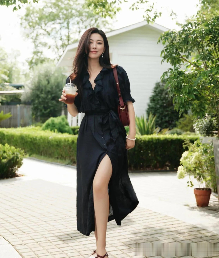 澳门新浦京 朱珠的气质果真出挑! 穿玄色开叉裙+玛丽珍鞋, 漂后又高档!