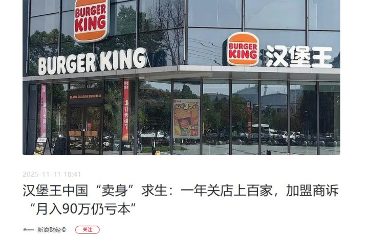 新浪财经:汉堡王中国“卖身”求生:一年关店上百家,加盟商诉“月入90万仍亏本”