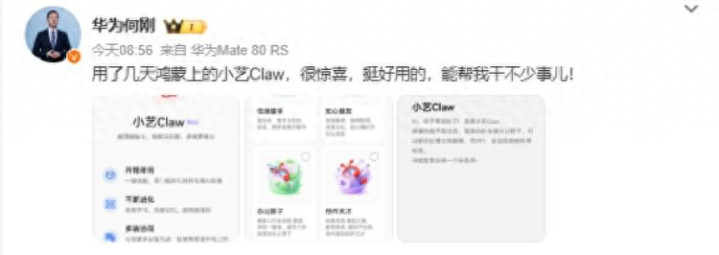 澳门新浦京游戏 华为何刚晒鸿蒙小艺Claw: 能写PPT自动回邮件, “挺好用的”
