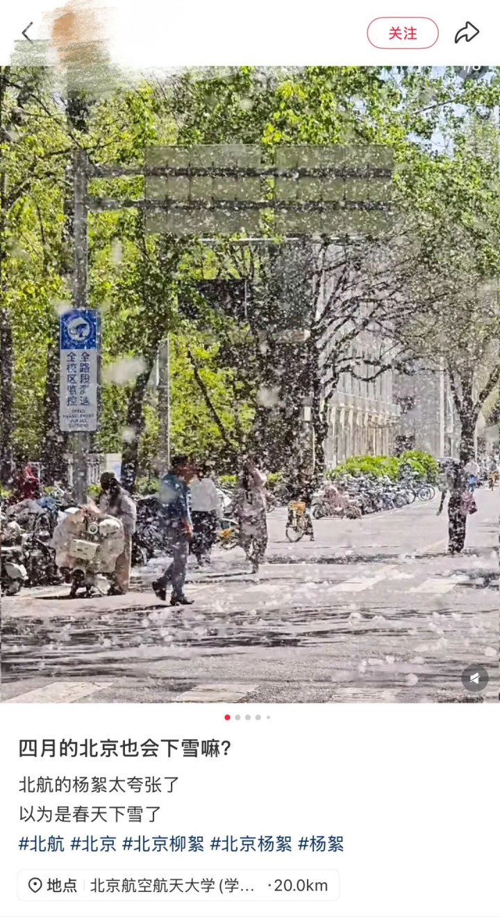 北京的四月,杨柳絮满天飞。(图/外交平台截图)