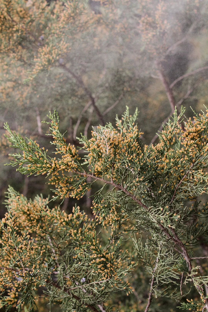 北京春季常见致敏花粉以木本植物花粉为主,有榆科、柏科、松科、杨柳科等。而其中最主要的过敏原是三、四月庸碌传播花粉的圆柏雄株。