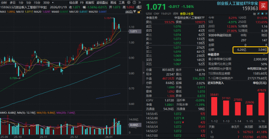 热门ETF方面,双线布局“算力+AI欺诈”的创业板东说念主工智能ETF(159363)场内颤动收跌1.56%,辞谢10日线,缩量成交8.68亿元!单周爆买近17亿元后,资金贯串第六日大额净流入,当天再度净申购3.22亿份,连续坚韧加仓。