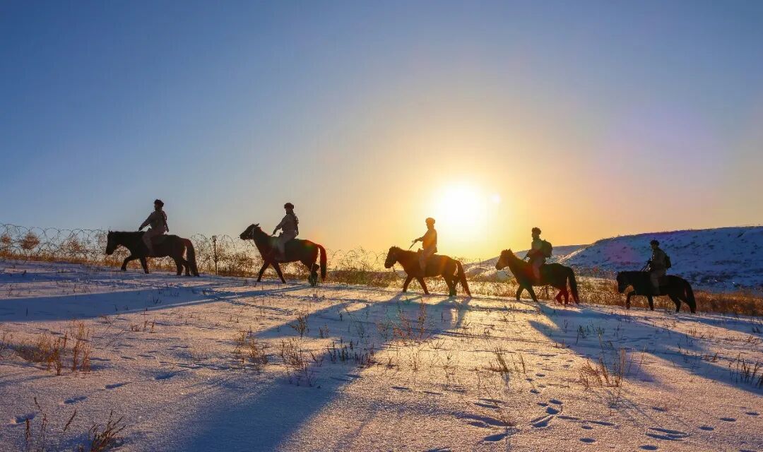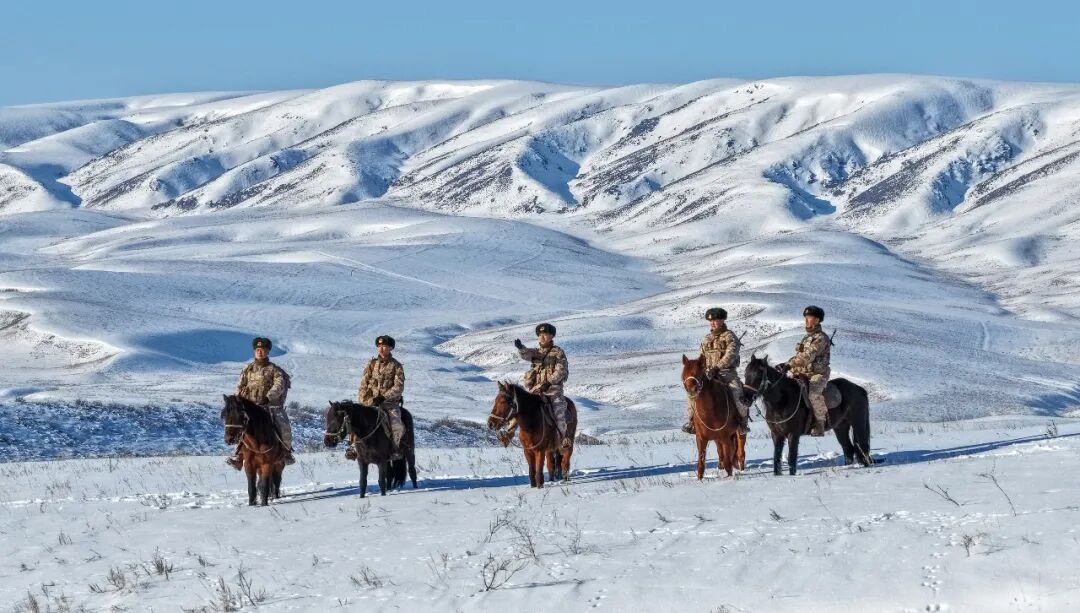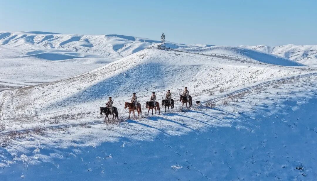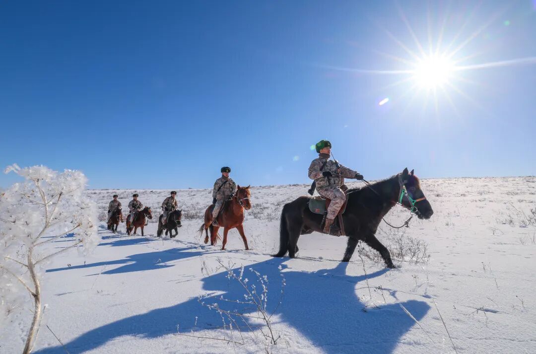 骑着军马踏雪巡视