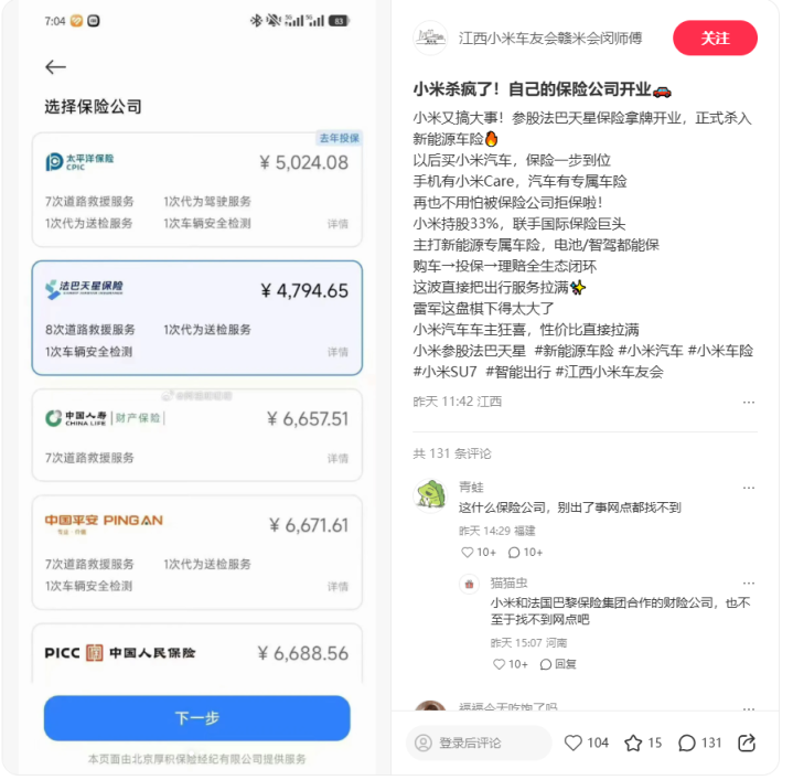 澳门新浦京 小米汽车联手法巴天星推官方车险, 现在仅在北京地区进行续保展业